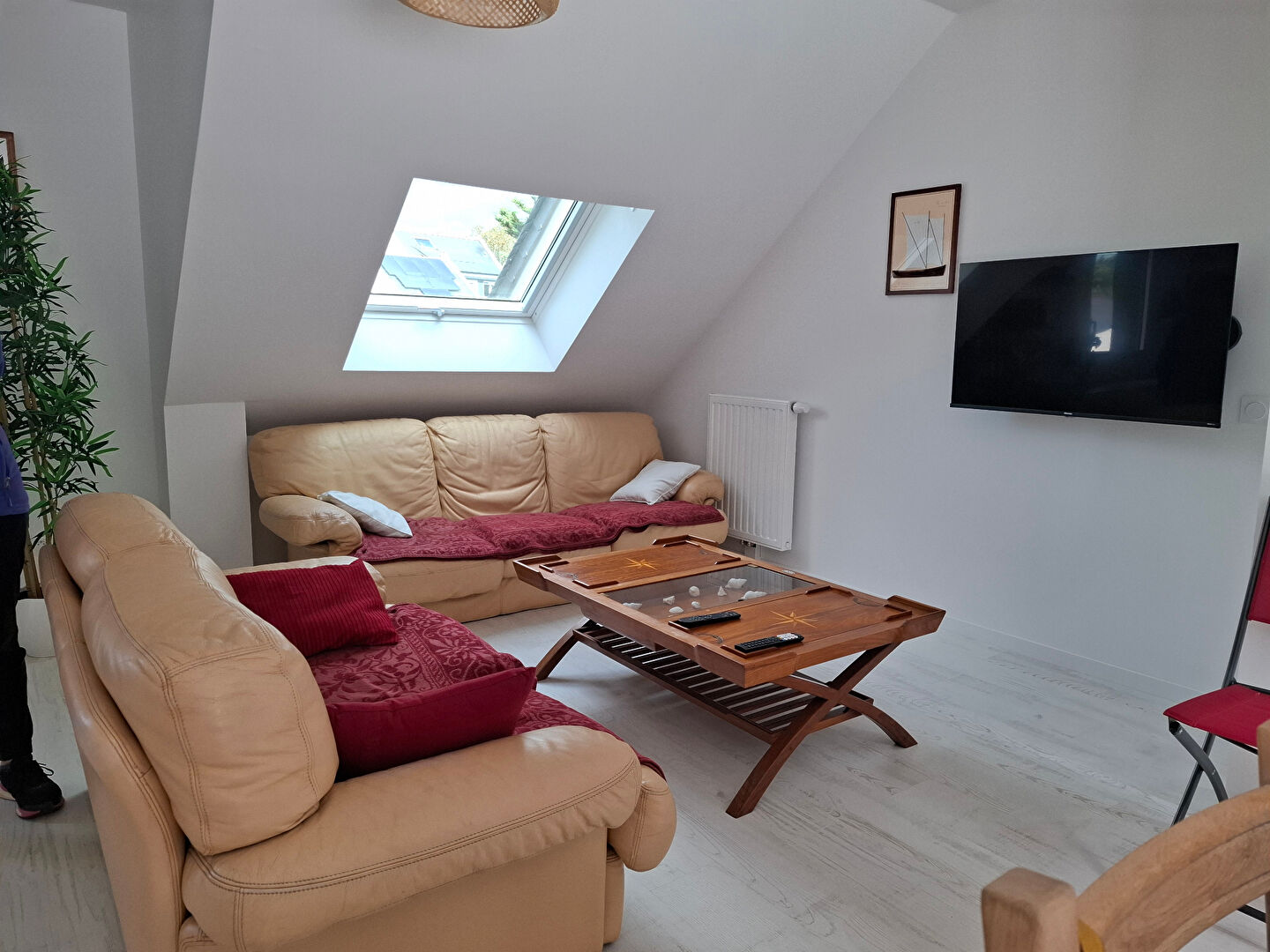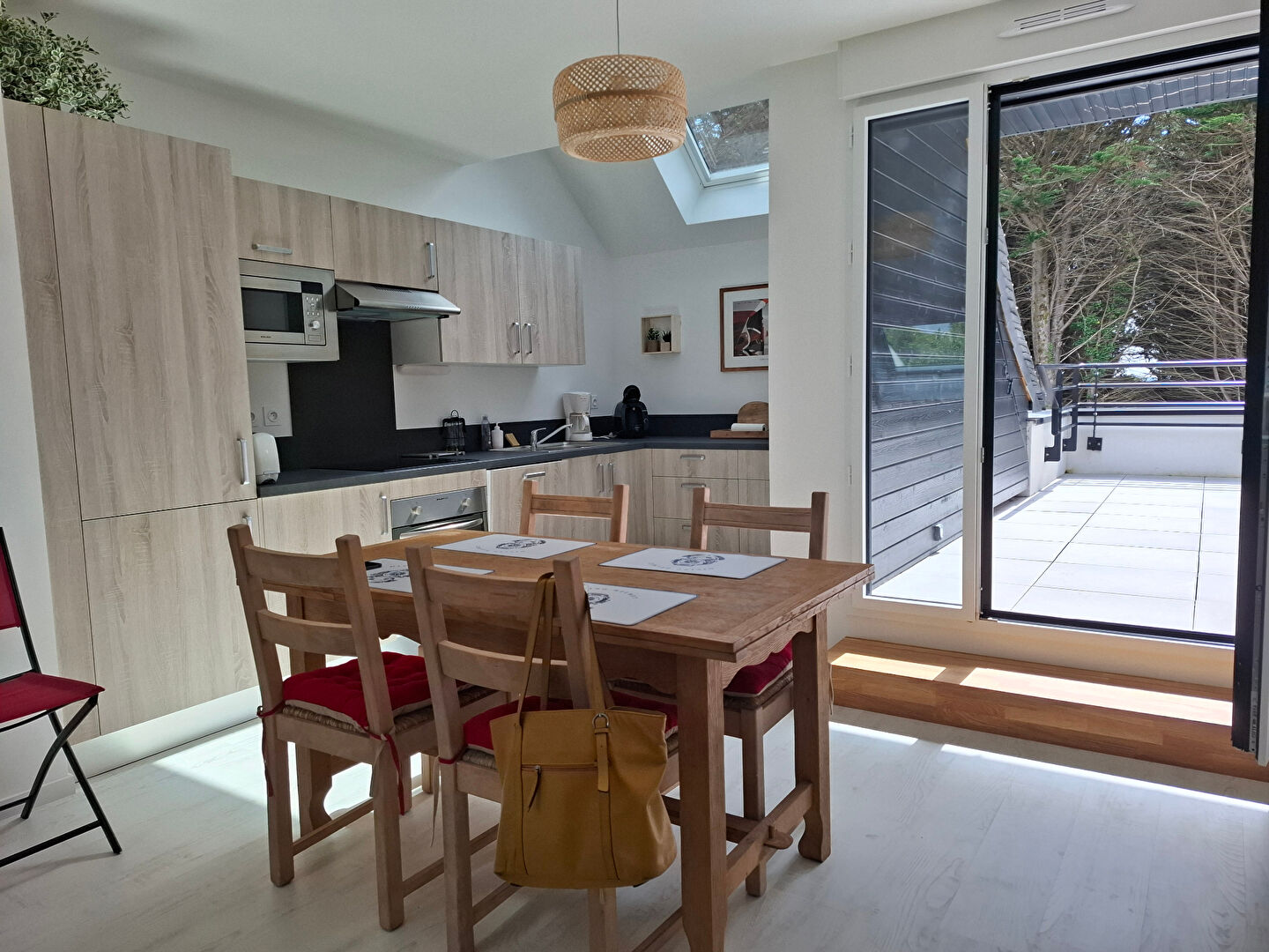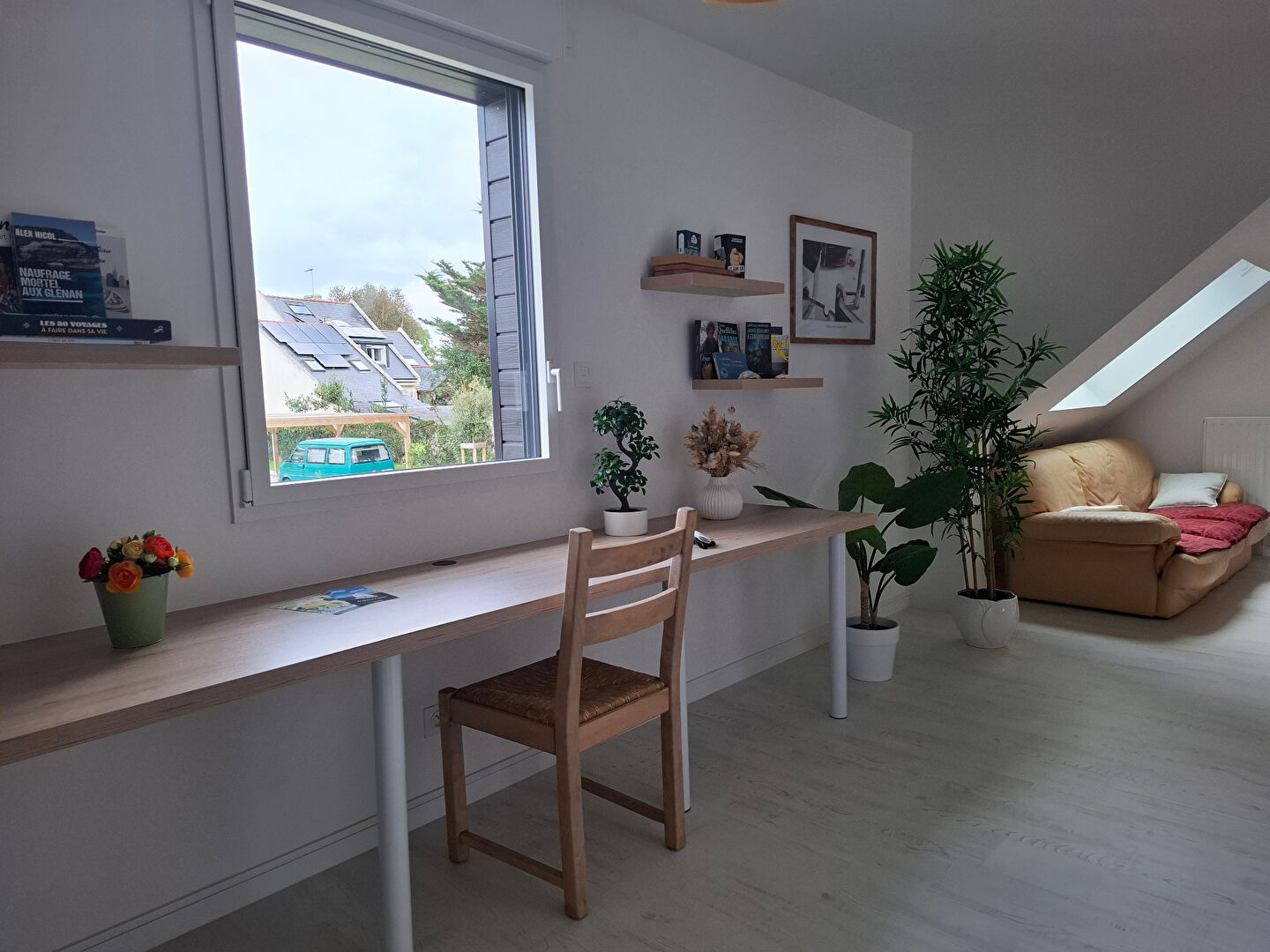 Concarneau, secteur du Cabellou et à deux pas des plages venez découvrir ce beau T2 meublé avec une grande terrasse de 44m². Il se compose d’une entrée, d’un séjour avec coin cuisine aménagée et équipée donnant sur une belle terrasse, une grande salle d’eau, des WC séparés et une chambre avec placard. Appartement entièrement connecté. Deux places de stationnement et 1 box privé