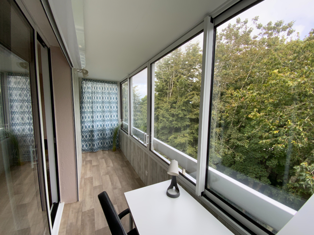 Brest secteur La Cavale Blanche à 5 minutes de l’hôpital de la Cavale ou du Centre Ville très bel appartement refait à neuf il y a 3 ans, vendu avec tout l’ameublement en très bon état. Situé au 3ème et dernier étage sans ascenseur il bénéficie d’une vue sur verdure, pas de vis à vis. Il est idéalement agencé, le coin nuit se fait discret derrière une jolie verrière. La cuisine est équipée et aménagée, la salle de bain est équipée d’une baignoire. Son plus ? un grand balcon fermé et isolé actuellement aménagé en bureau.