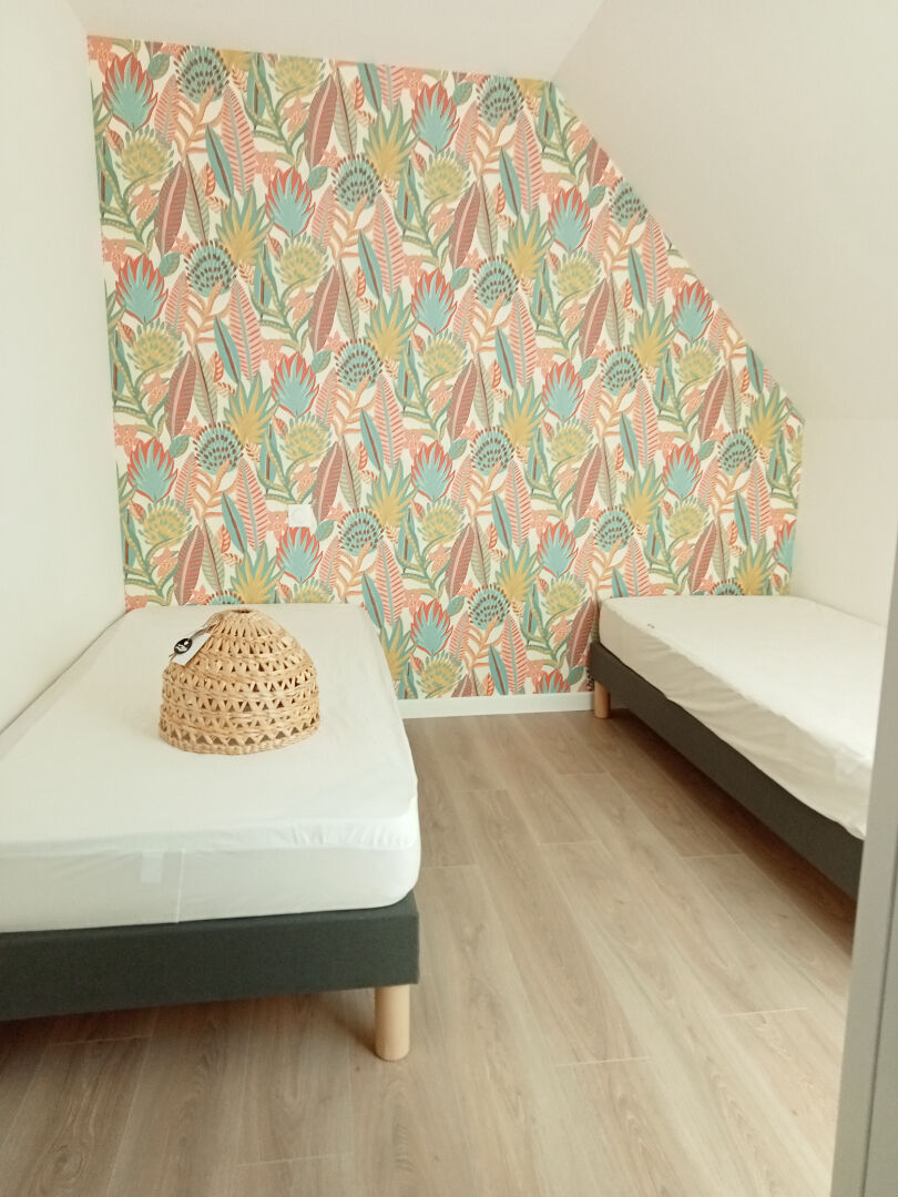 Il comprend une pièce principale avec un coin cuisine équipée et aménagée, une salle d’eau avec WC et deux chambres.