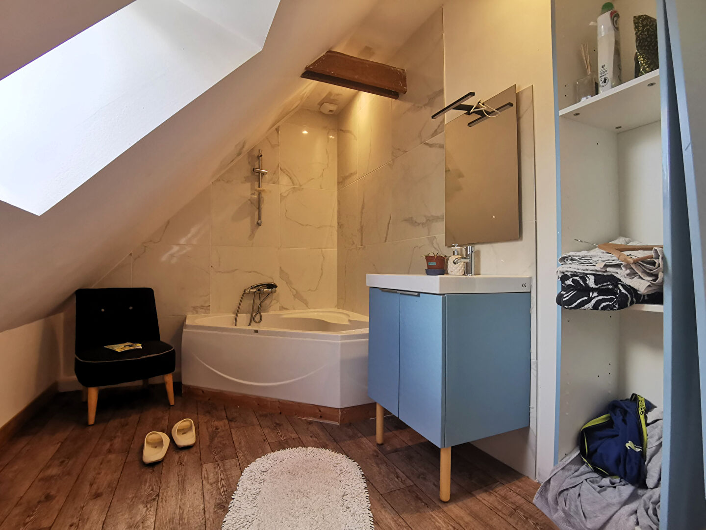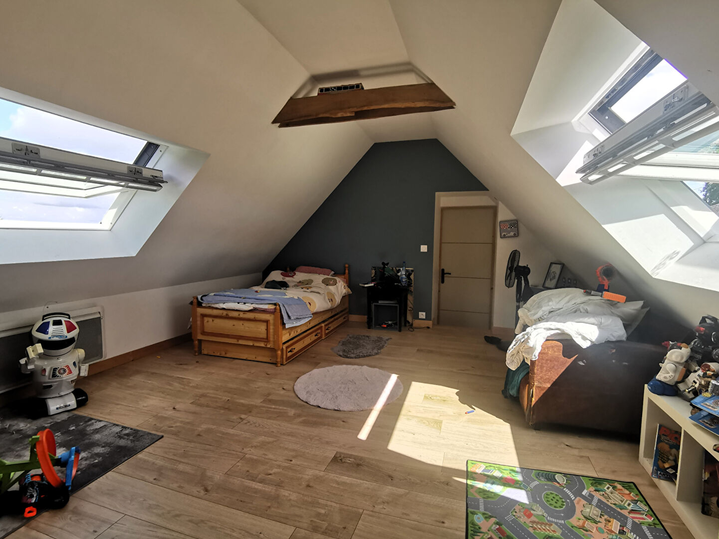 De nombreux travaux ont été effectués dernièrement (électricité, chauffage, fenêtres, plomberie..) et l’étage a été en quasi totalité refait. Quelques travaux restent à prévoir.