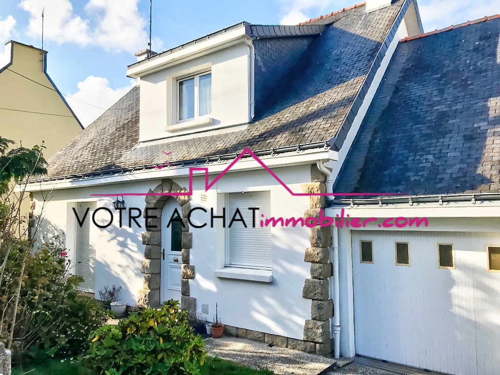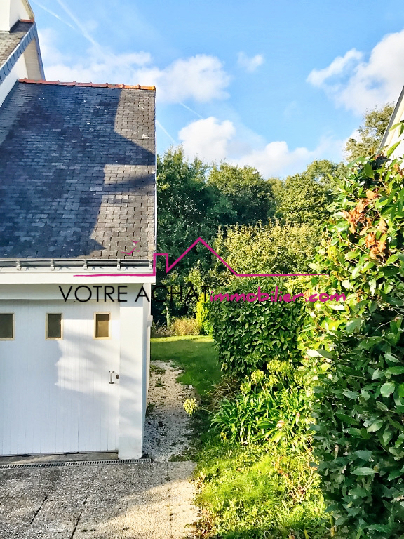 A Arzano bourg, jolie maison de 92m2, sur un terrain joliment arboré, donnant au sud sur la campagne et forêt.