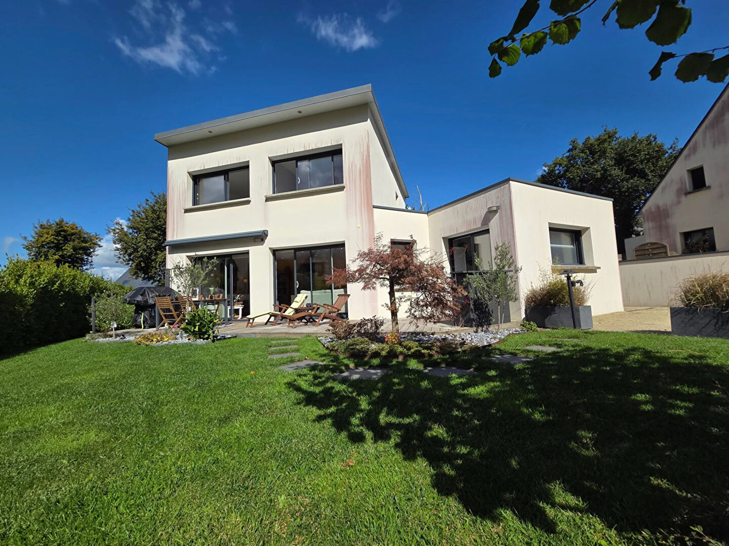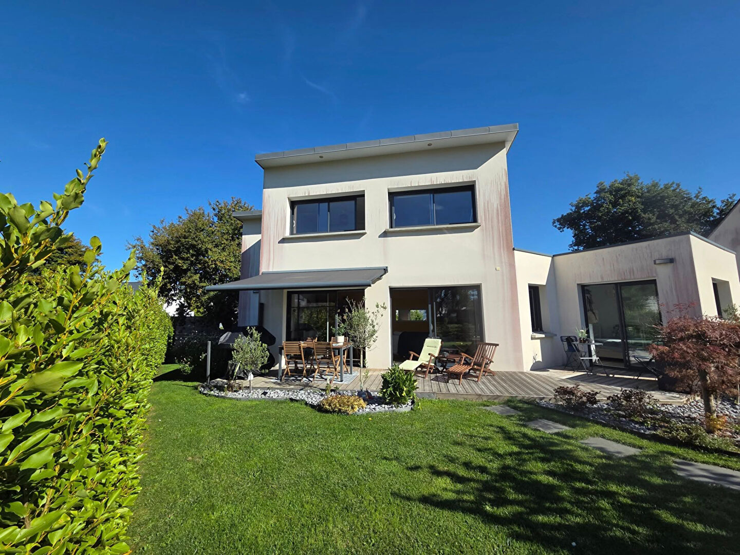 Nichée en fond d’impasse, dans un havre de paix avec très peu de vis-à-vis, cette maison contemporaine allie modernité, confort et douceur de vivre.