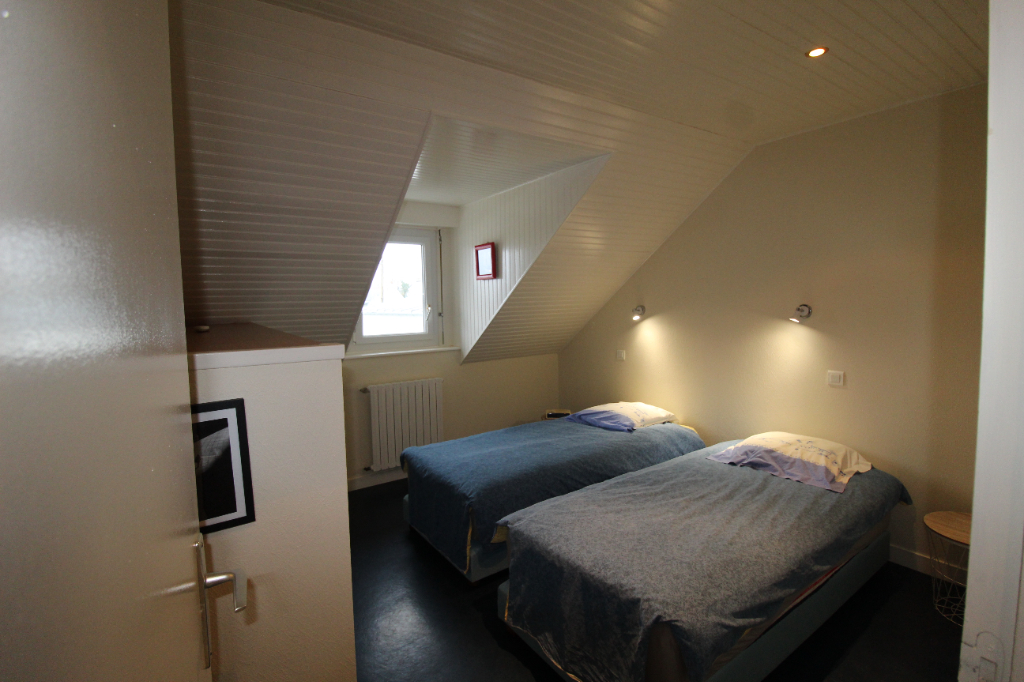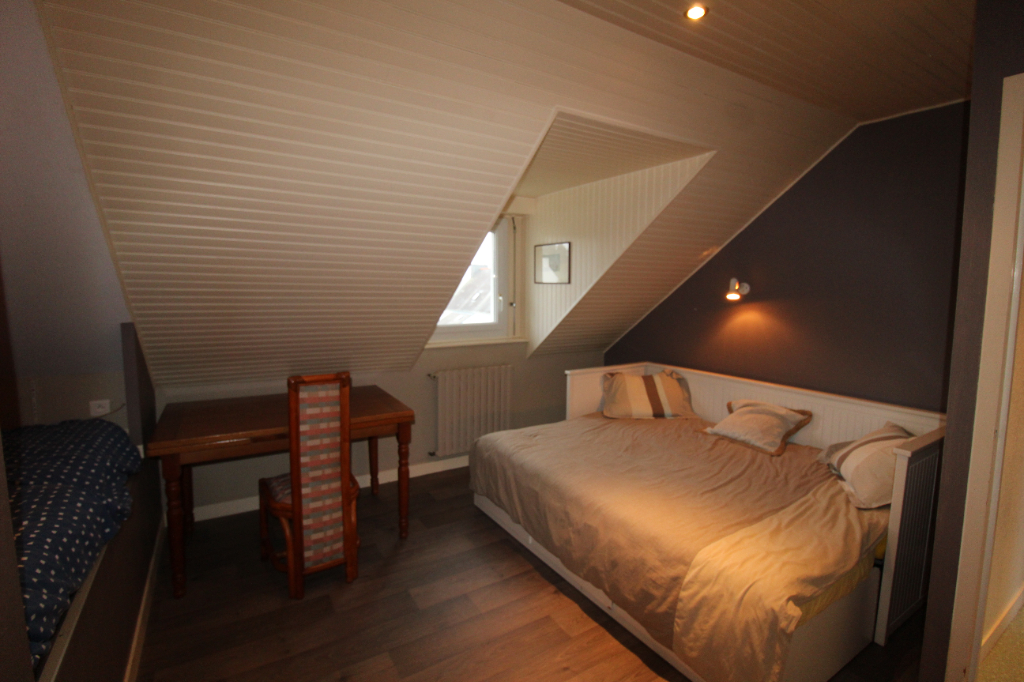 CONCARNEAU, chaleureuse maison meublée disponible à partir de début d’octobre jusqu’à fin juin 2026. Elle se compose : au rez-de-chaussée surélevé d’un beau séjour, grande cuisine aménagée et équipée avec arrière-cuisine ; SAS donnant sur salle d’eau avec WC ; dégagement desservant deux belles chambres ; à l’étage, un palier desservant une salle de bains avec WC et deux chambres. Le tout sur parcelle de 400 m². Jardin clos et arboré !