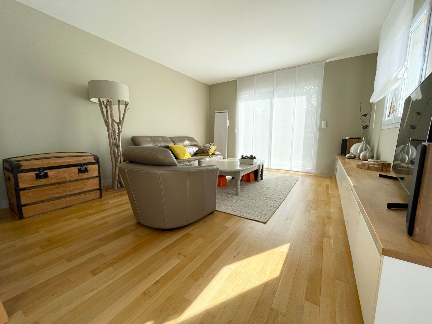 Au sud, vous profiterez d’une grande pièce de vie lumineuse offrant l’accès à la terrasse, une cuisine ouverte moderne, aménagée et équipée.