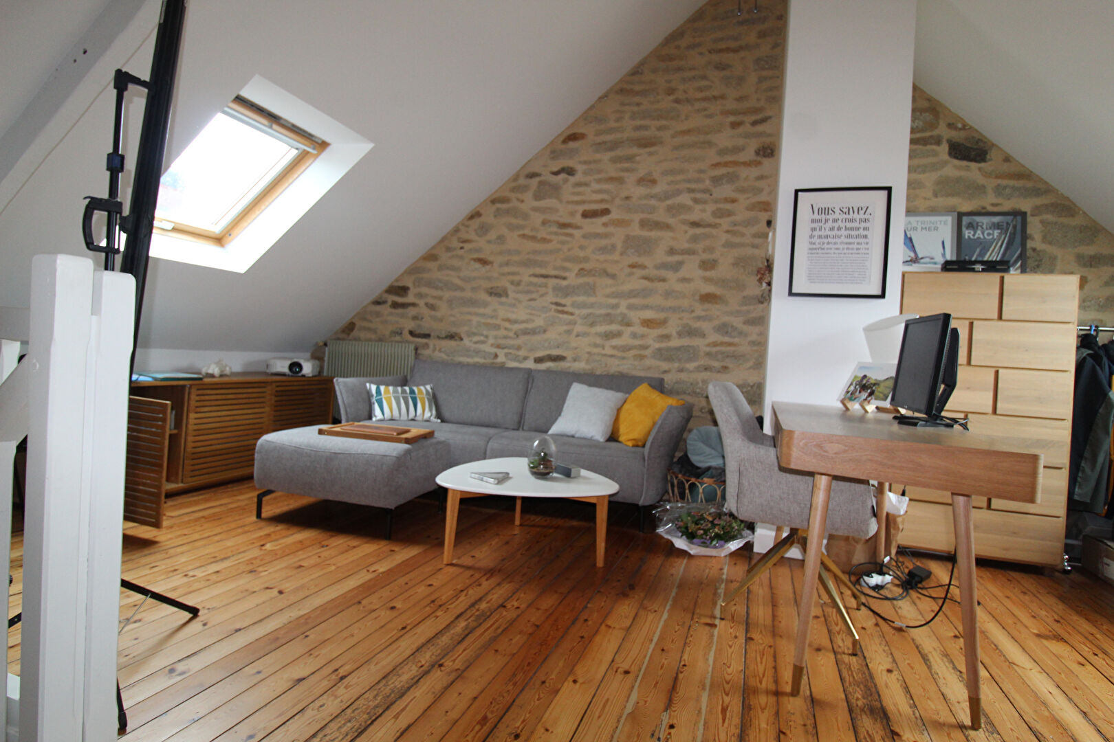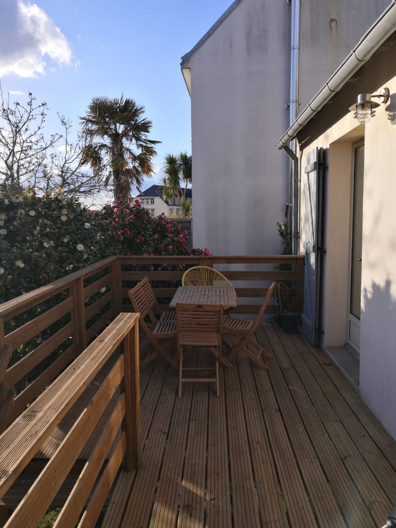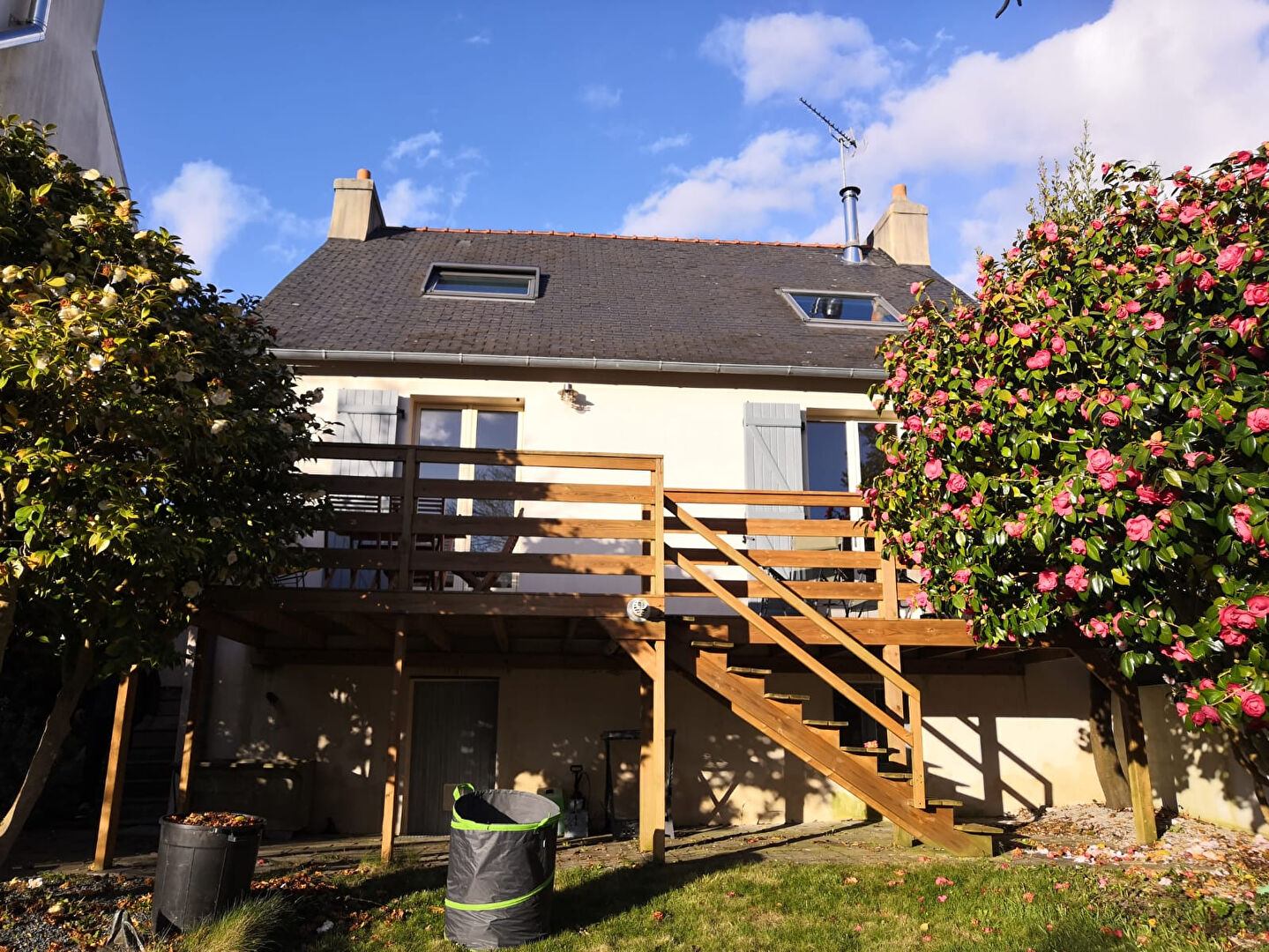 Quimper- secteur Thépot – En exclusivité maison en pierres qui vous séduira par son charme. Elle comprend un sous sol, au rez-de-chaussée, une entrée, un cellier avec dressing, une cuisine aménagée et équipée, un salon séjour donnant sur une belle terrasse suspendue avec une vue dégagée, salle d’eau et wc. Au 1er étage, 2 chambres et une mezzanine de 25 m2. Le tout sur un terrain de 450 m2 environ. Proximité à pied des commerces, écoles et centre ville ! Visite virtuelle sur demande (4.73 % honoraires TTC à la charge de l’acquéreur.)