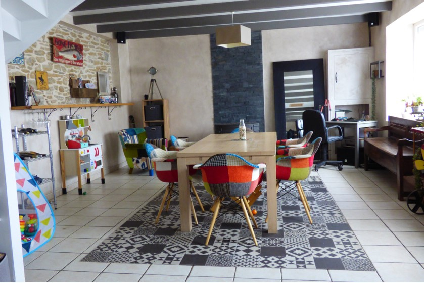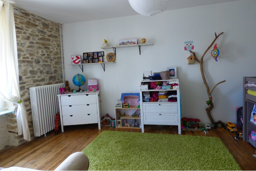 Au rez-de-chaussée, la cuisine est ouverte sur une grande pièce à vivre, équipée d’un poêle. On accède à l’arrière de la maison à une salle de bain, un salon tv (convertible en chambre pour une vie de plein pied), et une véranda ouvrant sur le jardin. Au 1er et 2ème étages, 3 belles chambres et une salle de jeux vidéos (ou 4ème chambre).
