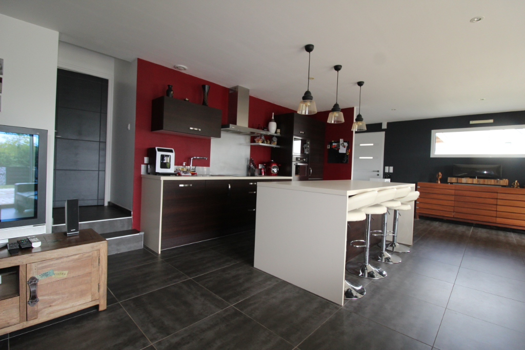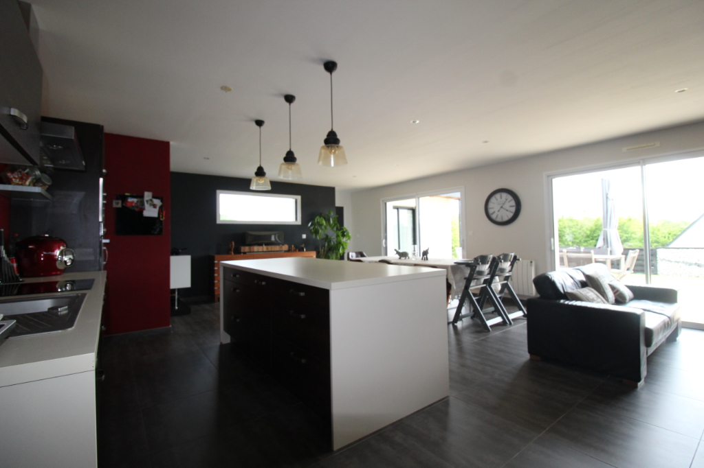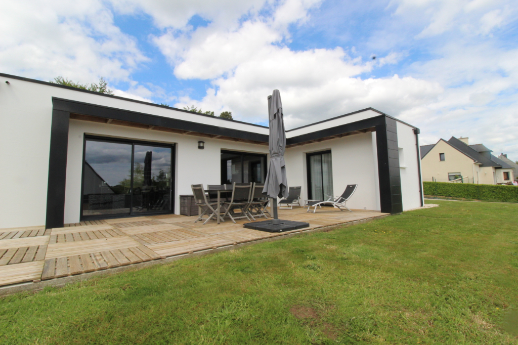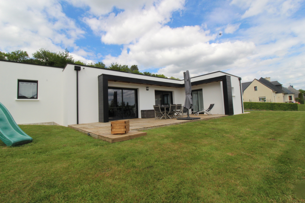 Maison contemporaine de plain-pied édifiée en 2010 comprenant un bel espace vivre avec cuisine aménagée et équipée , une suite parentale avec salle de bains plus douche , deux chambres donnant chacune sur la salle d’eau , un bureau , un garage, un carport, un abris de jardin le tout sur un jardin de 1300 m2 de terrain entièrement clôturé . Pour plus d’informations contactez
