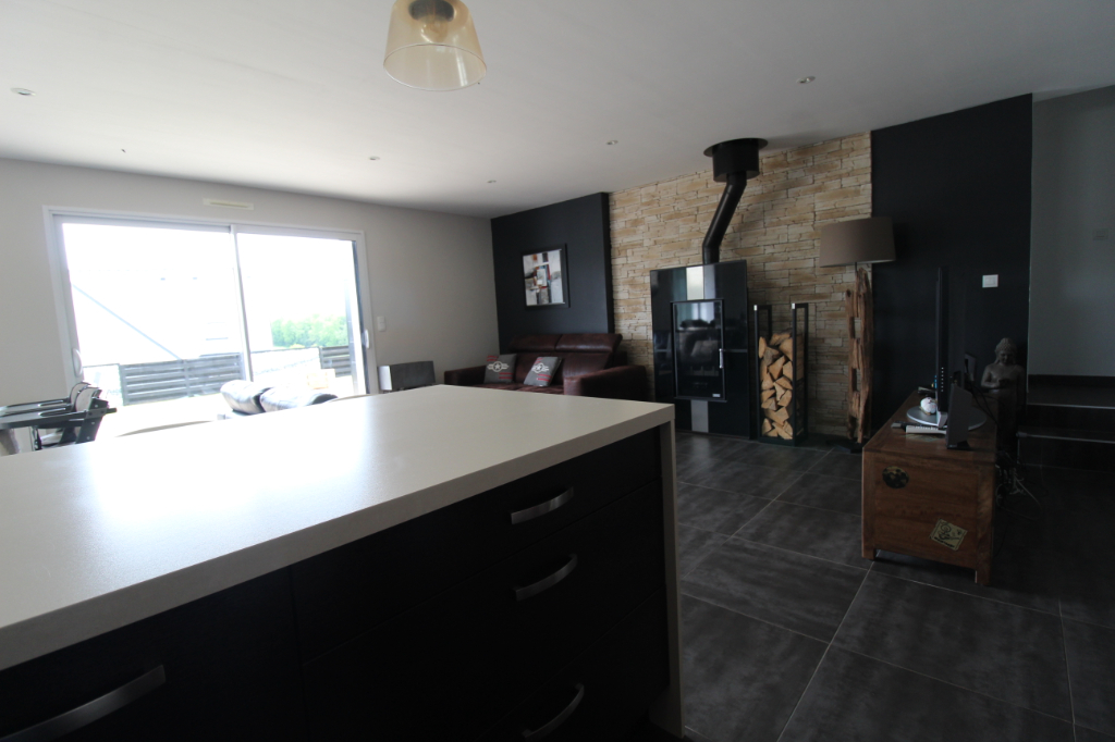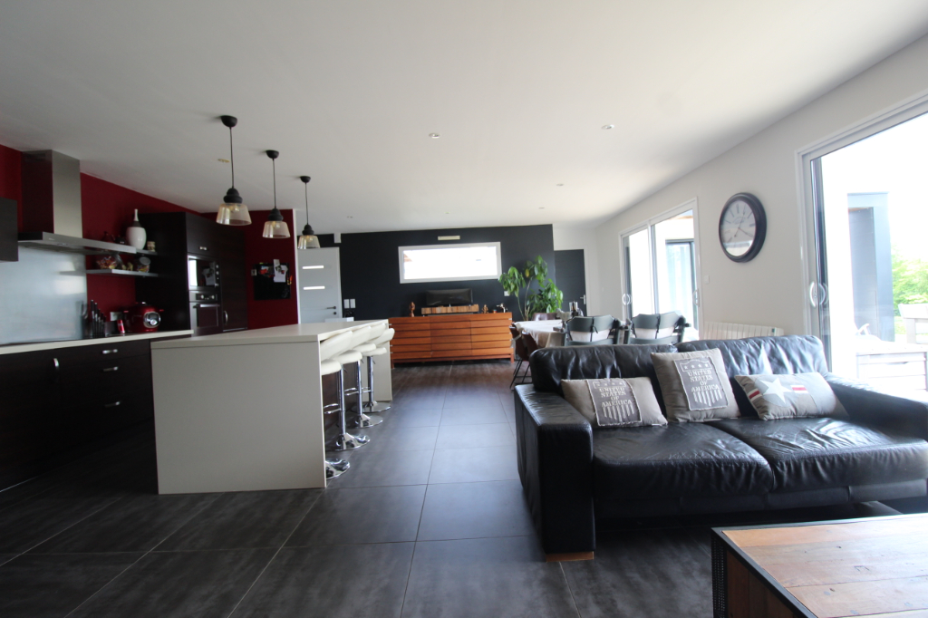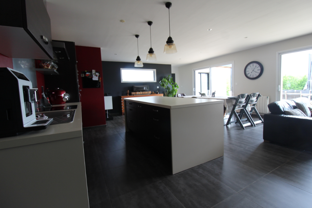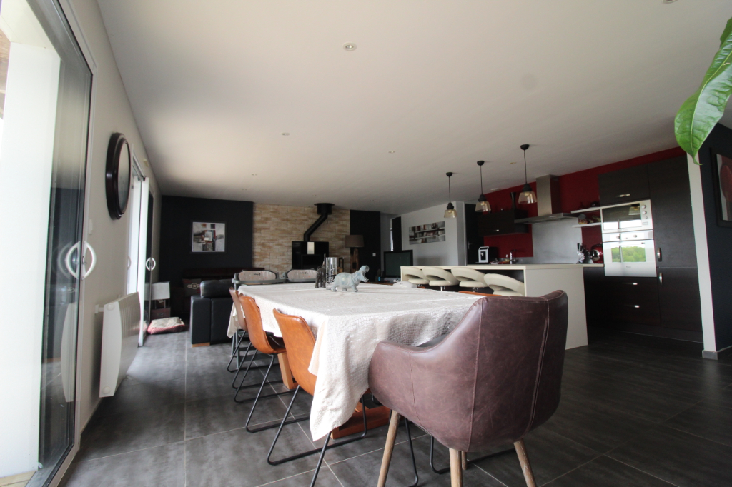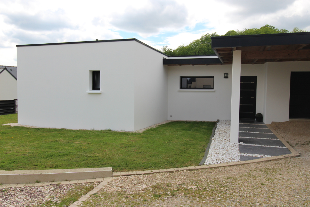 Maison contemporaine de plain-pied édifiée en 2010 comprenant un bel espace vivre avec cuisine aménagée et équipée , une suite parentale avec salle de bains plus douche , deux chambres donnant chacune sur la salle d’eau , un bureau , un garage, un carport, un abris de jardin le tout sur un jardin de 1300 m2 de terrain entièrement clôturé . Pour plus d’informations contactez