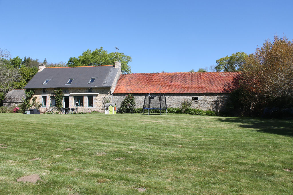 Melgven – Pour les amoureux de la pierre et à l’abri des regards, vous serrez séduit par cette propriété rénovée, édifiée sur un parc en partie boisé de 54 900 m² de terrain. Elle se compose d’un hall d’entrée avec placard, d’un vaste salon séjour de 60 m² avec sa cheminée d’origine donnant accès directe sur un joli parc, cuisine aménagée et équipée. Vous et votre famille , allez pouvoir recevoir contenu des 5 chambres très spacieuse avec placard. La place vous manque ? alors vous disposerez de deux dépendances supplémentaires d’une surface de 200 m² environ. Rare sur le marché ! (3.90 % honoraires TTC à la charge de l’acquéreur.)