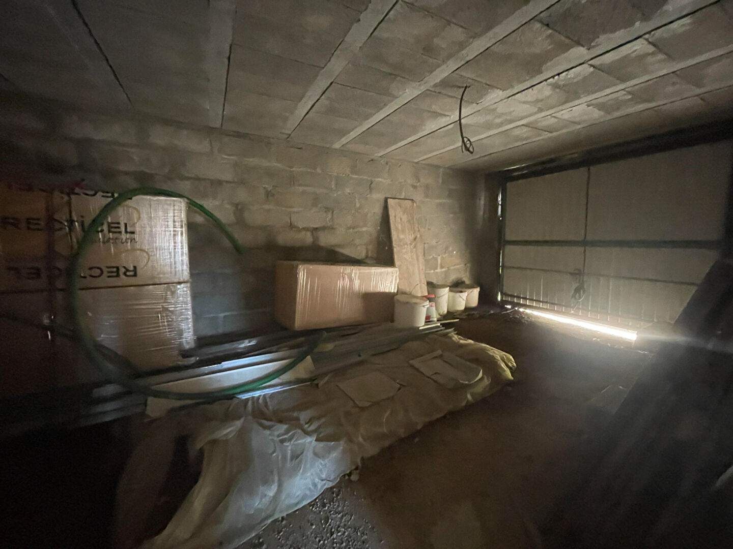 Dans le garage de 20m2, arrivées d’eau et évacuations disponibles, pour wc, ballon eau chaude, buanderie, etc…