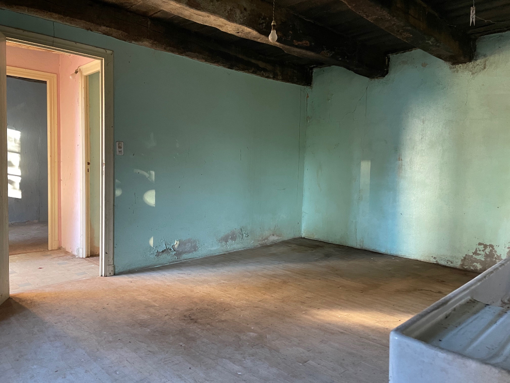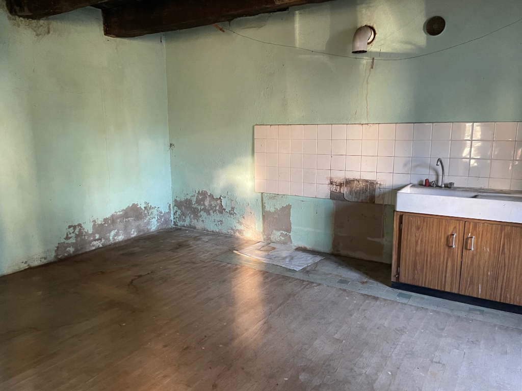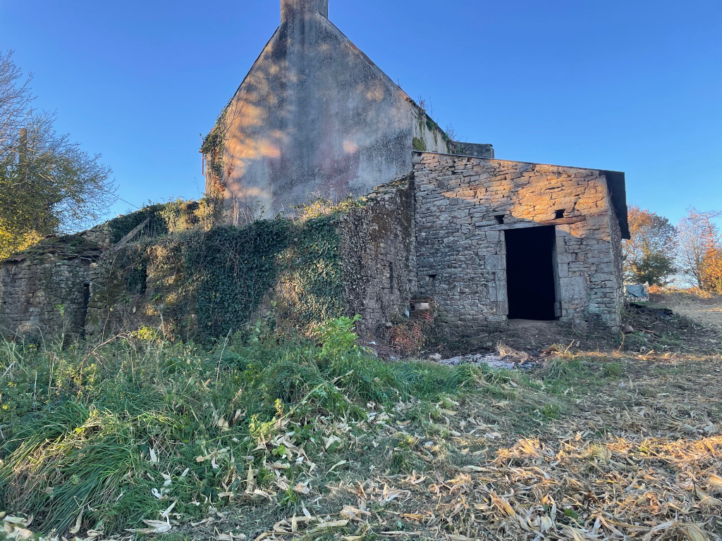 A l’entrée du terrain, une maison en ruine de 45m2 au sol environ, et 2 extensions en pierre d’environ 20m2 chacune.